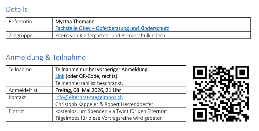 Als Elternrat Steinacker ist es uns ein grosses Anliegen, dieses Thema gemeinsam mit Ihnen und den Elternräten Oberseen und Tägelmoos aufzugreifen.